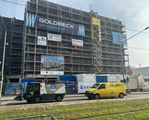 Neubau von vier Mehrfamilienhäusern mit 83 Wohneinheiten und einem Aldi - aktuell in Ausführung